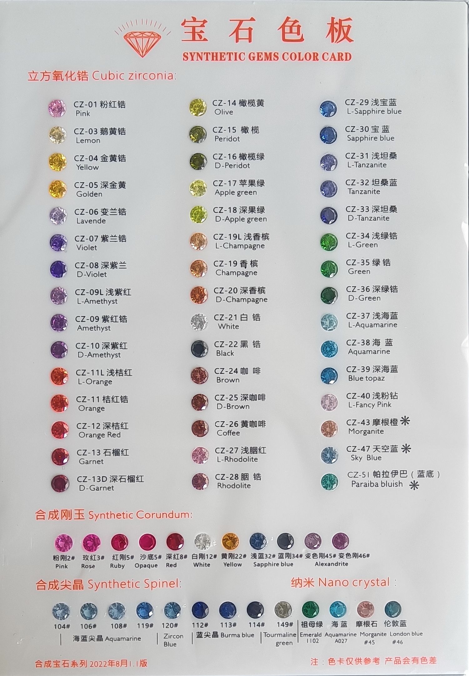 锆石色卡-1 CUBIC ZIRCONIA COLOR-1