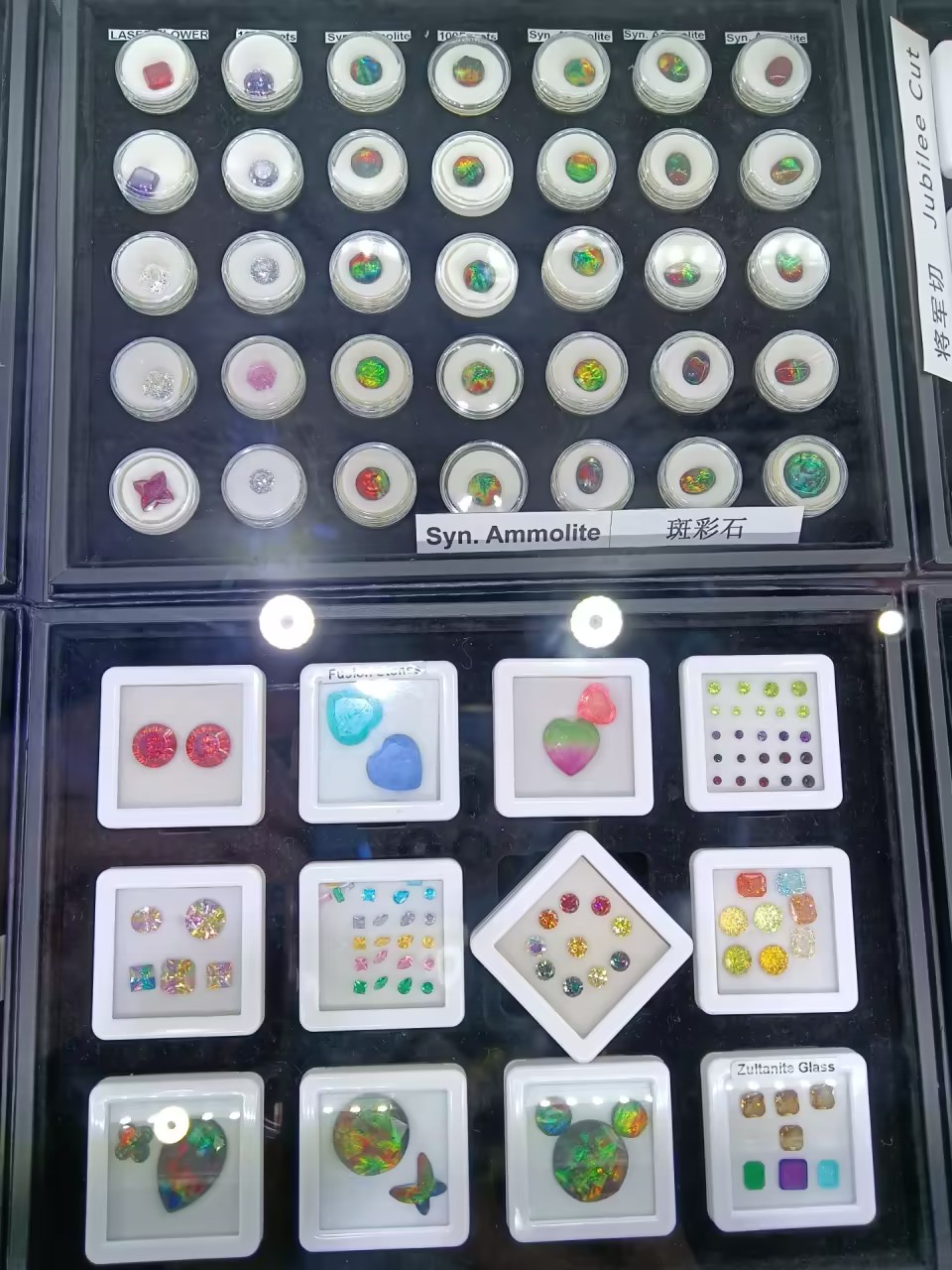 Synthetic Ammolite(Crystal top+M.O.P. bottom), see more color here:http://www.cjjewellery.cn/page500